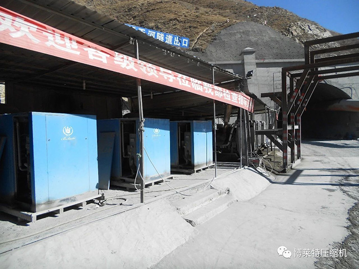 经历工程组精挑万选,一共26台博莱特BLT-175A空压机被成功引进沿线隧道工程安装运行。博莱特BLT-175A空气压缩机,标配IP54防护全封闭电机,针对各种复杂气候恶劣工况进行加强设计,确保每台设备在现场运行的可靠性。在极其高寒、高海拔的工程环境(如图所示)下,博莱特空压机不负众望,“缺氧”不缺动力,24小时全天候运行,为项目高效运作提供了可靠的保障。