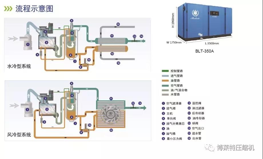 通过与业主多次交流,对现场使用工况的仔细分析,博莱特推荐采用了BLT-350A/250KW机型,工频和变频各一台,凭借博莱特品牌超高的性价比,赢得了客户的青睐。