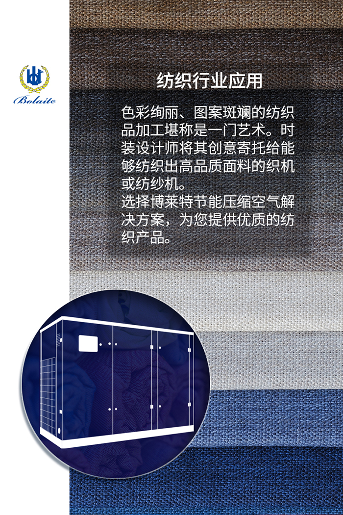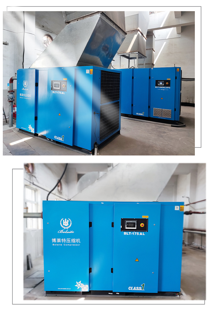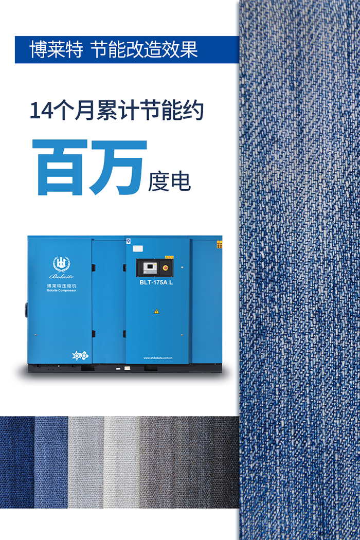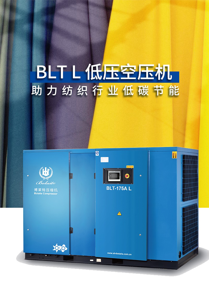 该纺织生产企业,于2021年3月份采购多台博莱特BLT-175AL、BLT-200AL低压机,替换原常压空压机组,平稳运行14个月,出口压力稳定在4.9-5.1bar之间,