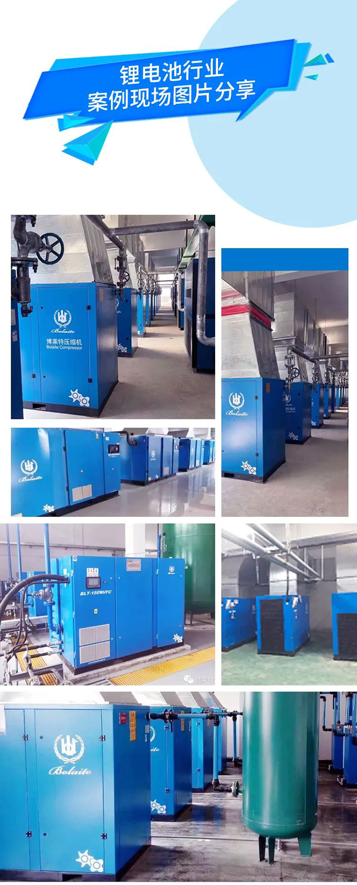 博莱特秉承“美好生活,共同创造”的品牌承诺,致力于为锂电行业的上中下游产业链提供节能、系统、智能的压缩空气解决方案,为合作伙伴的“充电”历程提供可靠的空气动力。