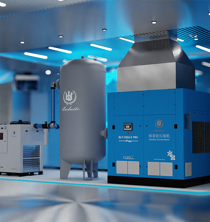 考虑到现场的用气量变化范围在40%-100%,为减少空压机泄载时消耗的“碳”能量,博莱特推荐了BLT-275A S PM+系列双驱变频系列,该系列获得国家一级能效。满足用户用气量的同时,尽可能地减少碳排放。此外,危险废弃物处置项目所处的环境特别恶劣,粉尘颗粒多和早晚温差大,对空压机的稳定运行又是一大考验。博莱特新一代双驱系列,在箱板正面及侧面多处配置了防尘过滤棉,提升了空压机的防尘能力。而负压式箱体搭载的新一代冷却系统,使其在严苛的高温环境下依然表现稳定。