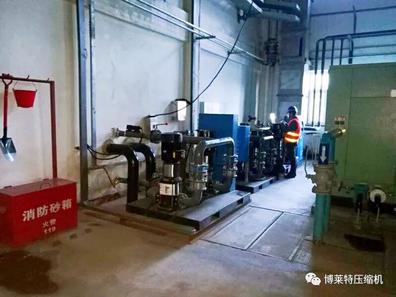 博莱特公司悉知了该电厂的状况:一是,因为热水加热需要消耗大量的蒸汽;二是,空压机房的空压机因为润滑油温度高,需要消耗大量的能量来降温。售后服务销售人员积极与该电厂的相关人员沟通交流,建议通过改造现有空压机,收集空压机的余热,将生活用水先提升到60℃-65℃,然后再引入蒸汽进一步升温,使热水温度达到90℃,这样就能满足其运营需求。通过博莱特空压机余热回收装置,不仅可以降低蒸汽的消耗量,也能降低空压机冷却系统的耗能。