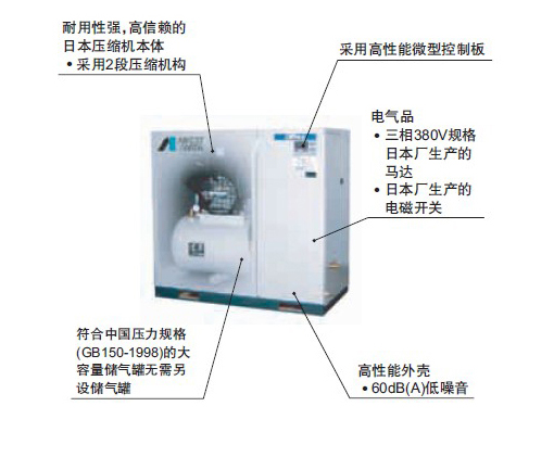 ● 大功率(1.4MPa)提供高品质无油空气