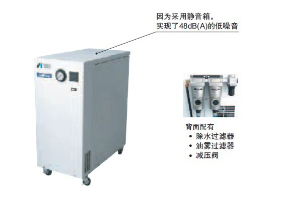 日本岩田无油带静音箱型空压机产品图二: